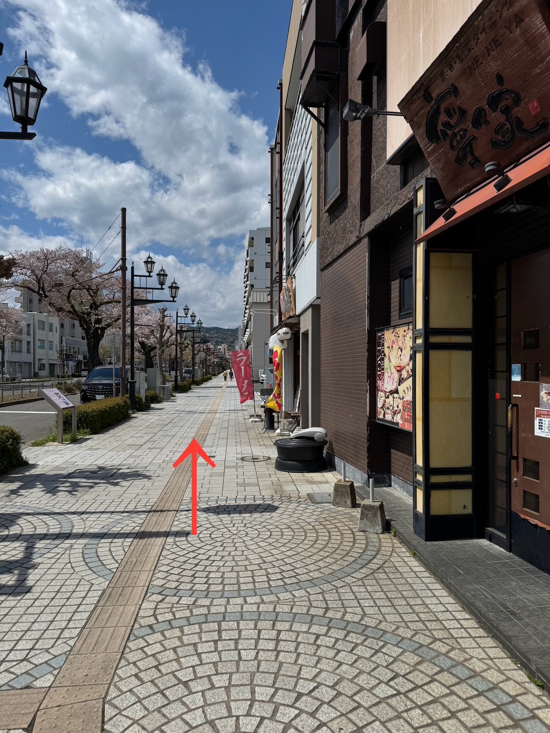⑥横断歩道を渡ります。そして、左に曲がります。